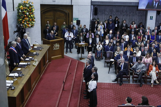 Tras concluir ambas ceremonias, las máximas autoridades de la Cámara de Diputados y del Senado asistieron al cambio de mando presidencial que se efectuó desde las 12:00 horas, en el Salón de Honor del Congreso Nacional.